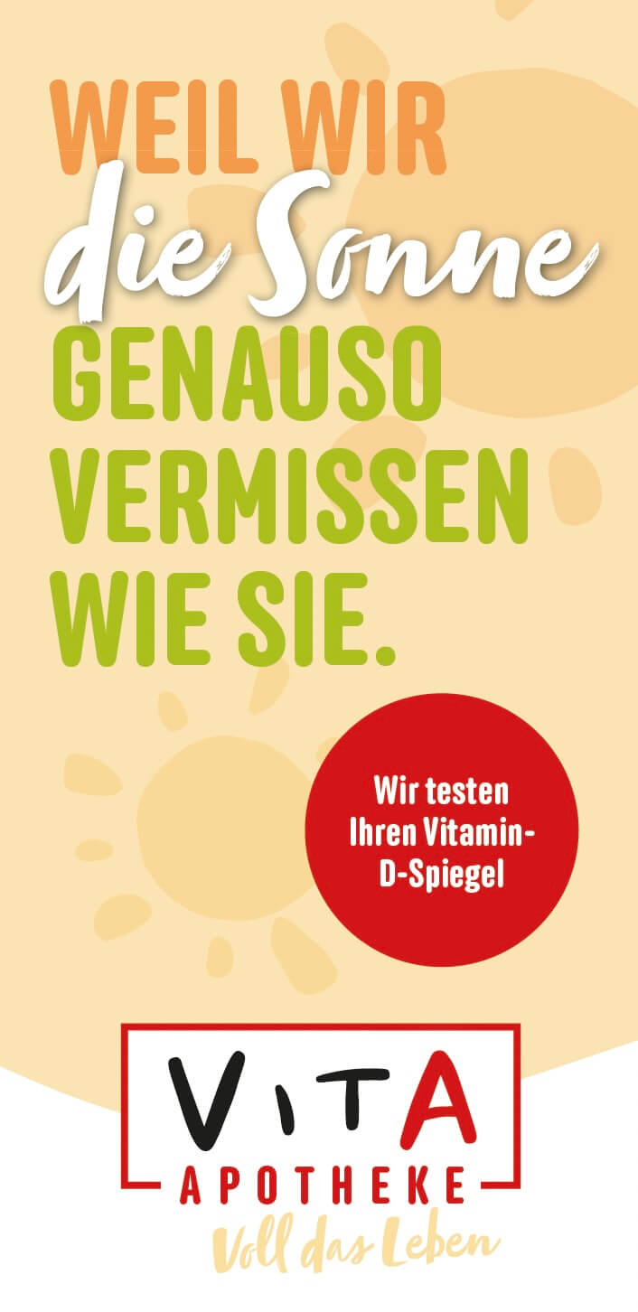 Wir messen Ihren aktuellen Vitamin-D-Spiegel. Das Ergebnis erhalten Sie nach etwa 15 Minuten, Kosten: 34,95€. Direkt im Anschluss besprechen wir Ihr Ergebnis. Bitte buchen Sie einen Termin: